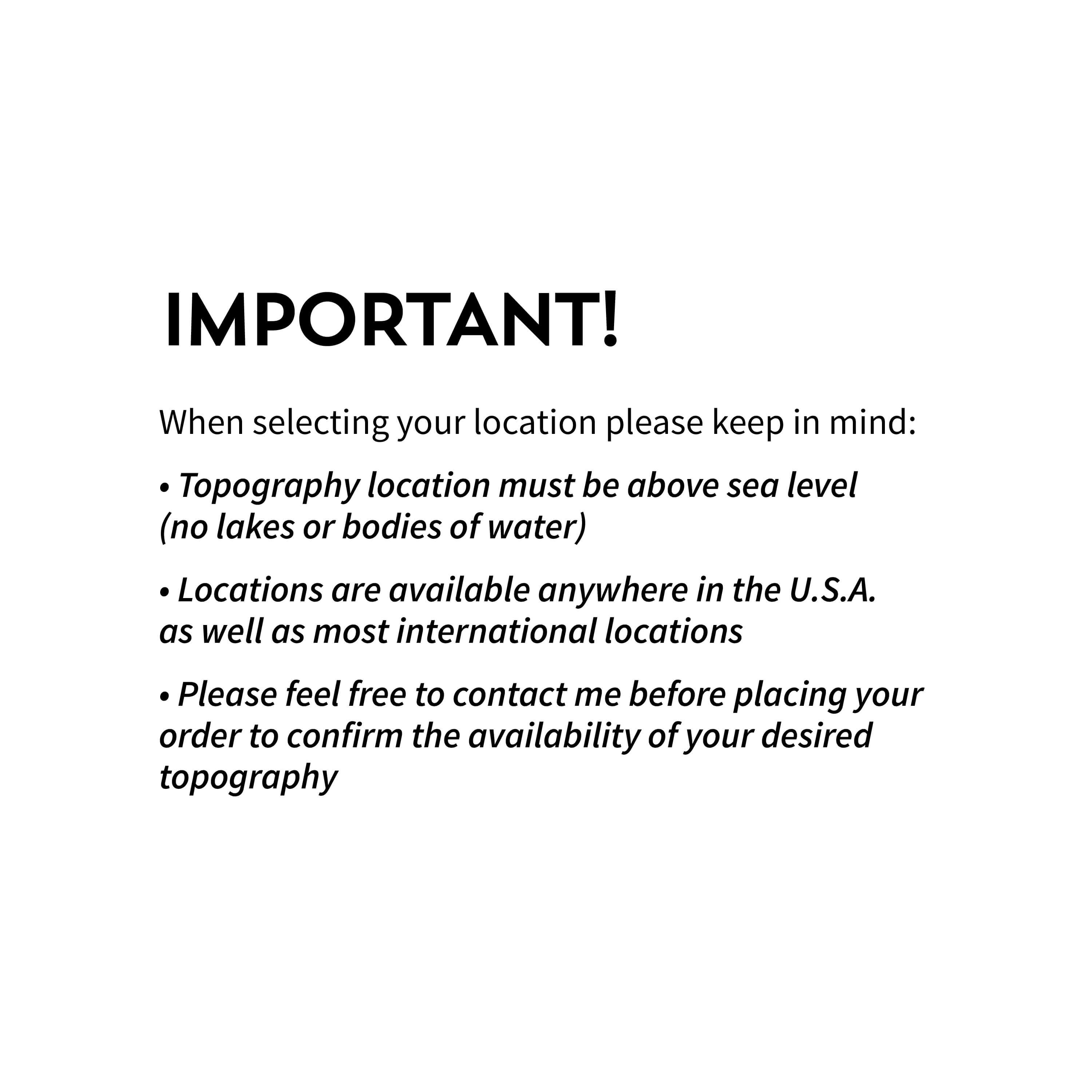• Please feel free to contact me before placing your order to confirm the availability of your desired topography